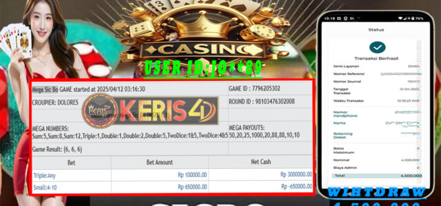 JACKPOT GACOR MAIN MEGA SICBO 12 APRIL 2025, Kemenangan GAME CASINO, Bukti Kemenangan GAME CASINO, Kemenangan LIVE CASINO, Menang CASINO online, LIVE CASINO, Situs Aman Terpercaya, WD Berapapun Pasti DI Bayar Tuntas,