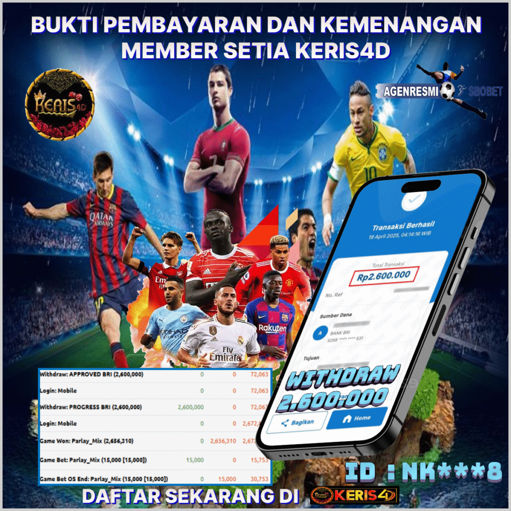 KERIS4D dikenal sebagai situs terpercaya yang selalu menghadirkan pengalaman bermain slot online yang aman, fair, dan berlisensi resmi. Di sini, kami tidak hanya sekadar memberikan janji, tapi bukti nyata berupa slip kemenangan yang dapat Anda lihat secara langsung.