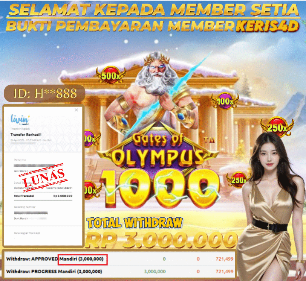 KERIS4D dikenal sebagai situs terpercaya yang selalu menghadirkan pengalaman bermain slot online yang aman, fair, dan berlisensi resmi. Di sini, kami tidak hanya sekadar memberikan janji, tapi bukti nyata berupa slip kemenangan yang dapat Anda lihat secara langsung.