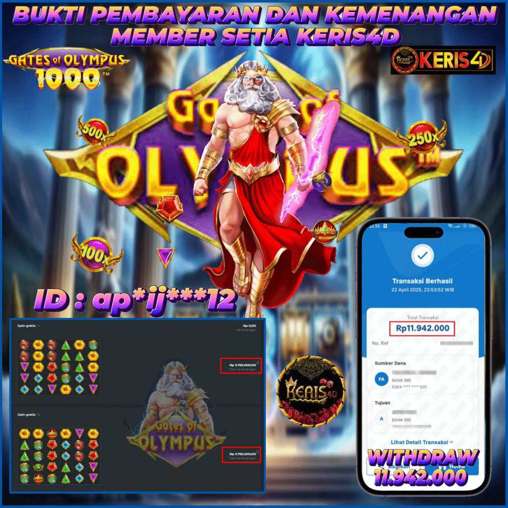 Setiap hari, member KERIS4D berhasil meraih jackpot besar dari berbagai provider slot ternama yang kami sediakan, seperti Pragmatic Play, Habanero, PG Soft, dan masih banyak lagi. Kami secara rutin menampilkan bukti screenshot atau rekapan kemenangan yang berhasil diraih, mulai dari kemenangan ratusan ribu hingga puluhan juta rupiah. Semua slip kemenangan ini kami hadirkan untuk membuktikan bahwa di KERIS4D, peluang menang itu nyata.