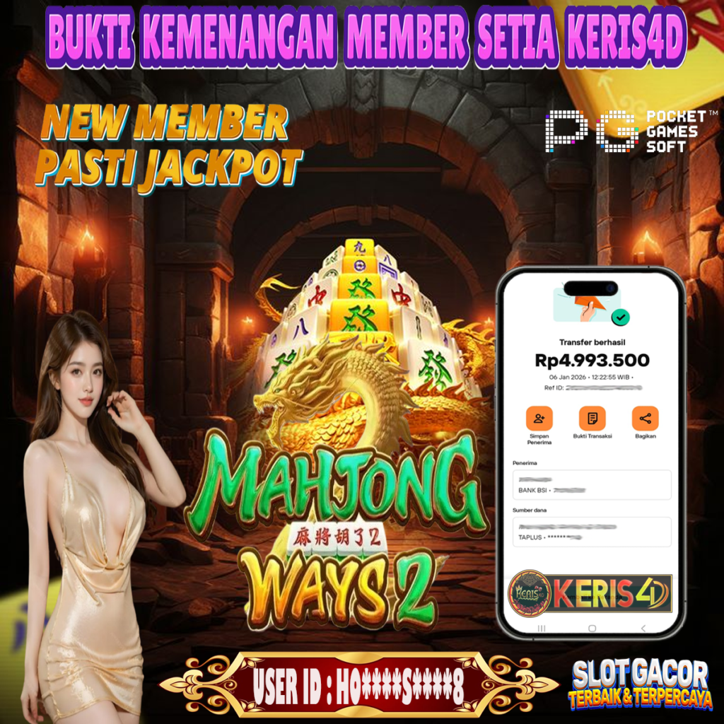KERIS4D dikenal sebagai situs terpercaya yang selalu menghadirkan pengalaman bermain slot online yang aman, fair, dan berlisensi resmi. Di sini, kami tidak hanya sekadar memberikan janji, tapi bukti nyata berupa slip kemenangan yang dapat Anda lihat secara langsung.