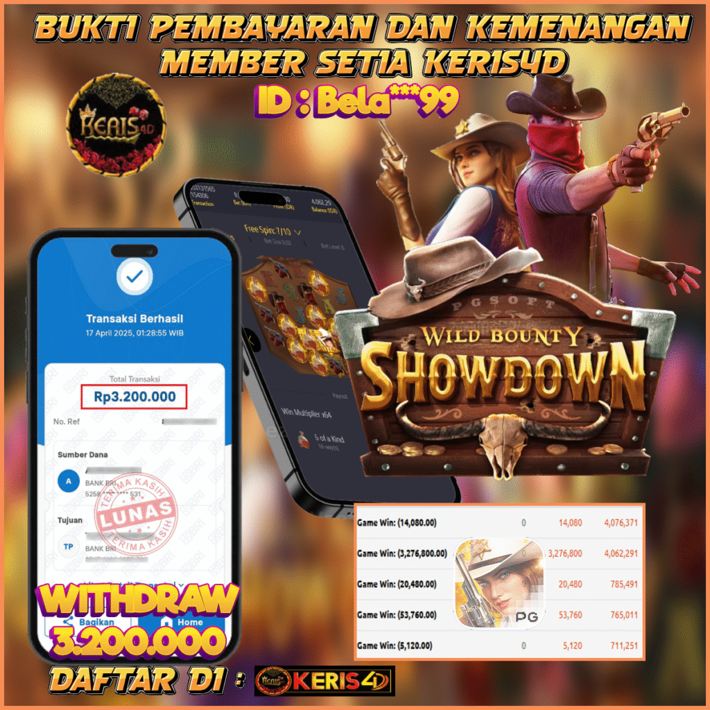 Setiap hari, member KERIS4D berhasil meraih jackpot besar dari berbagai provider slot ternama yang kami sediakan, seperti Pragmatic Play, Habanero, PG Soft, dan masih banyak lagi. Kami secara rutin menampilkan bukti screenshot atau rekapan kemenangan yang berhasil diraih, mulai dari kemenangan ratusan ribu hingga puluhan juta rupiah. Semua slip kemenangan ini kami hadirkan untuk membuktikan bahwa di KERIS4D, peluang menang itu nyata.